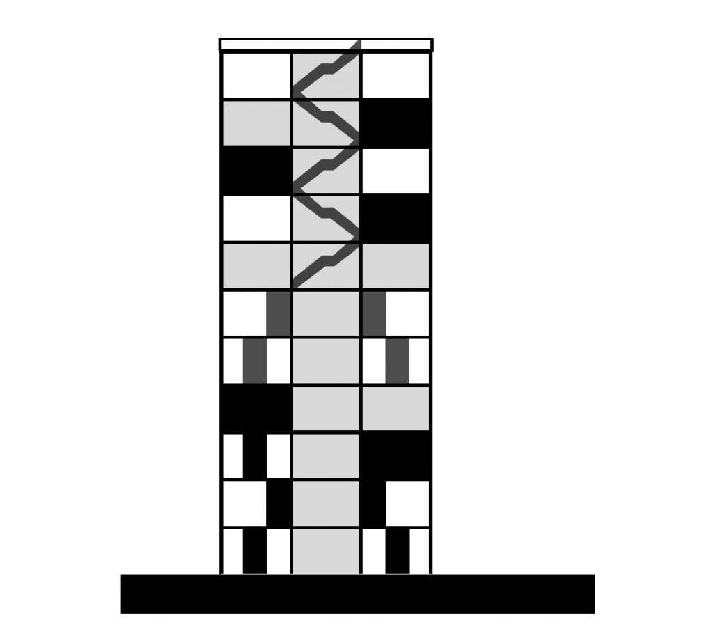 RUBIKO ist ein Prototyp für genossenschaftliches Wohnen kombiniert mit einem Supermarkt in Berlin. Das Gebäude vereint verschiedene Wohntypen – Single-, Paar-, Familien- und Clusterwohnungen – und schafft so eine inklusive, flexible Nachbarschaft. Gemeinschaftsräume und die gemeinsame Erschließung fördern Begegnung, Partizipation und ein aktives Miteinander. Konstruktiv basiert der Entwurf auf einem modularen 5×5 m-Raster, mit Recyclingbeton im Erdgeschoss und Holztragwerk ab dem 2. Obergeschoss, was Nachhaltigkeit und Vorfertigung optimiert. Die modulare Raumaufteilung ermöglicht flexible Anpassungen an unterschiedliche Nutzerbedürfnisse und zukünftige Veränderungen. RUBIKO zeigt, wie städtisches Wohnen effizient, divers und lebendig gestaltet werden kann. GRZ 0,63 I GFZ 2,85 I BGF 8731 m² I Nettowohnfläche 2633 m²