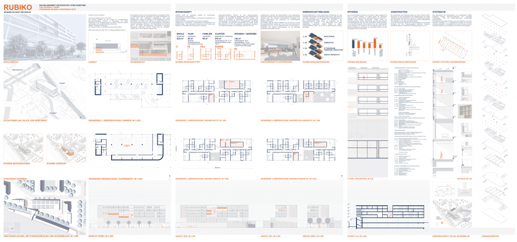 Rubiko Berlin, Bachelorthesis, Neubau mit Mischnutzung: Genossenschaftliches Wohnen, Supermarkt, Parken; Grundlagenarbeit über die Genossenschaft WAGNIS München I Wintersemester 2024/2025, Semester 6Planerin Lisa Wyrwoll, betreut von Prof. Schenk und Prof. Oliver Fritz